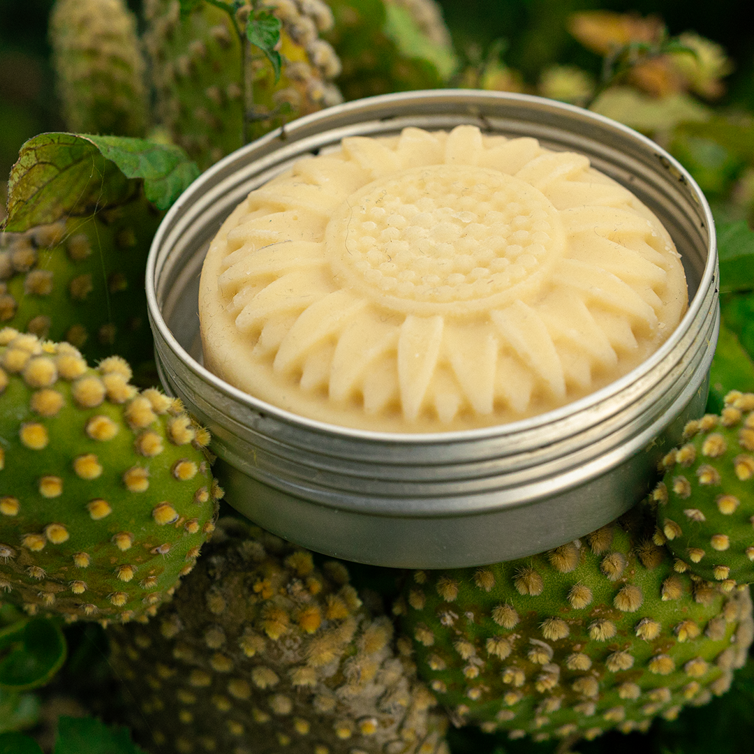 Crema corporal sólida elaborada con ingredientes vegetales, de origen natural.