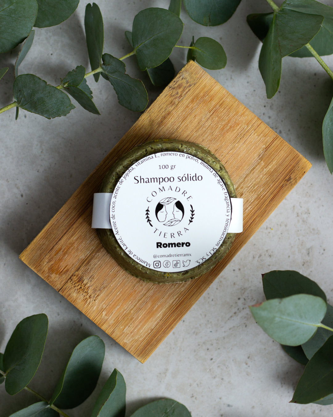 Champú sólido de romero elaborado con ingredientes naturales y basado en plantas.