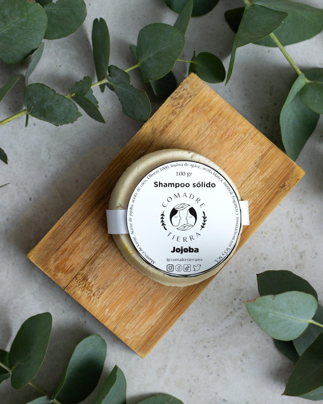 Champú sólido de jojoba elaborado con ingredientes naturales y basado en plantas.
